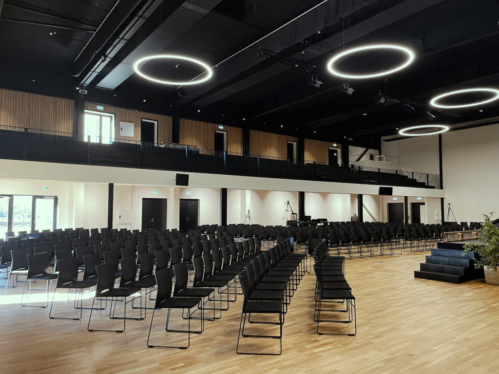 professionelt Lyd og lys, med mulighed for håndholdt mikrofoner, teleslynge m.m.